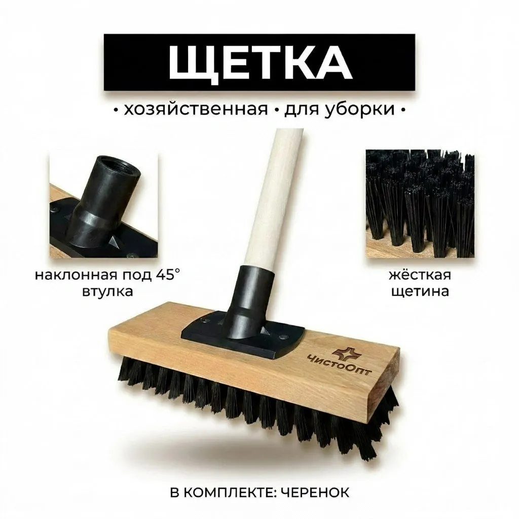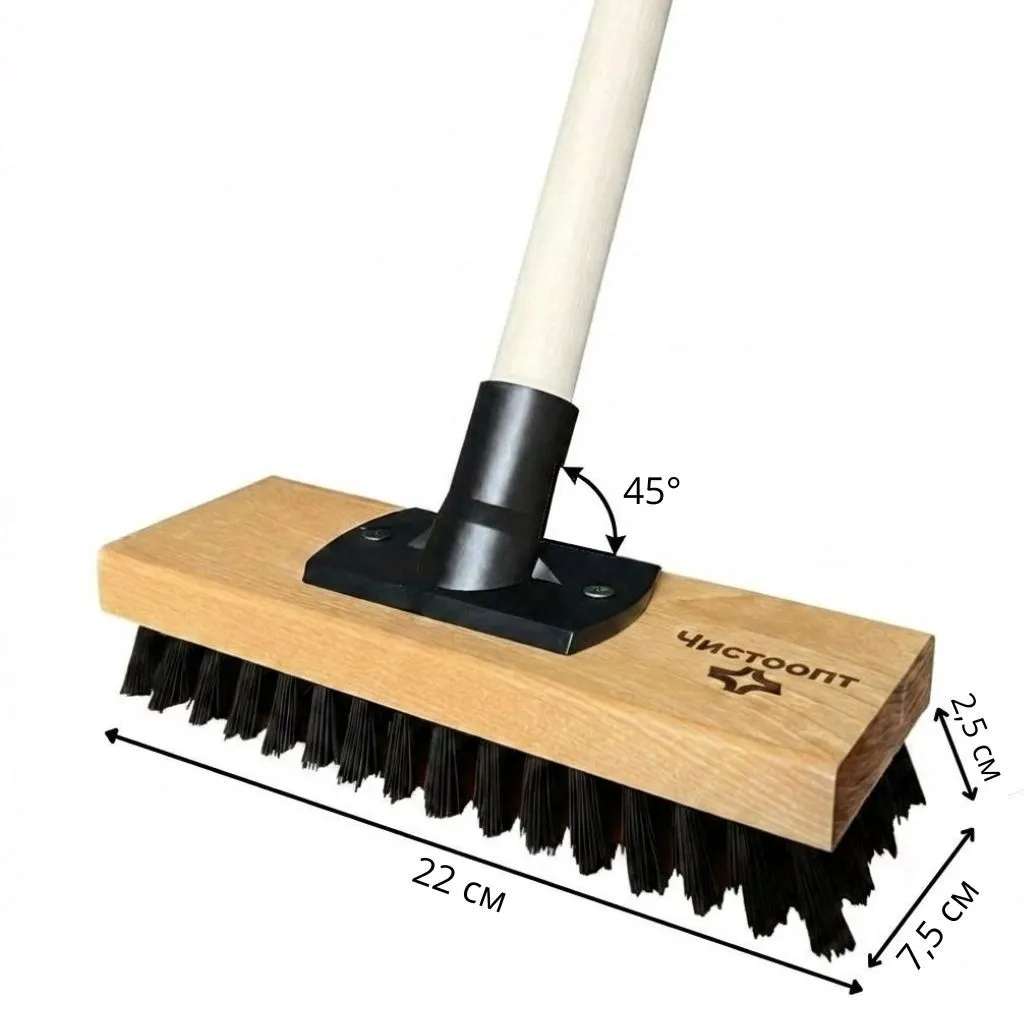 Комплект: Щетка палубная "ЧистоОпт", деревянная колодка 215х80 мм, угловой держатель 45* + Черенок