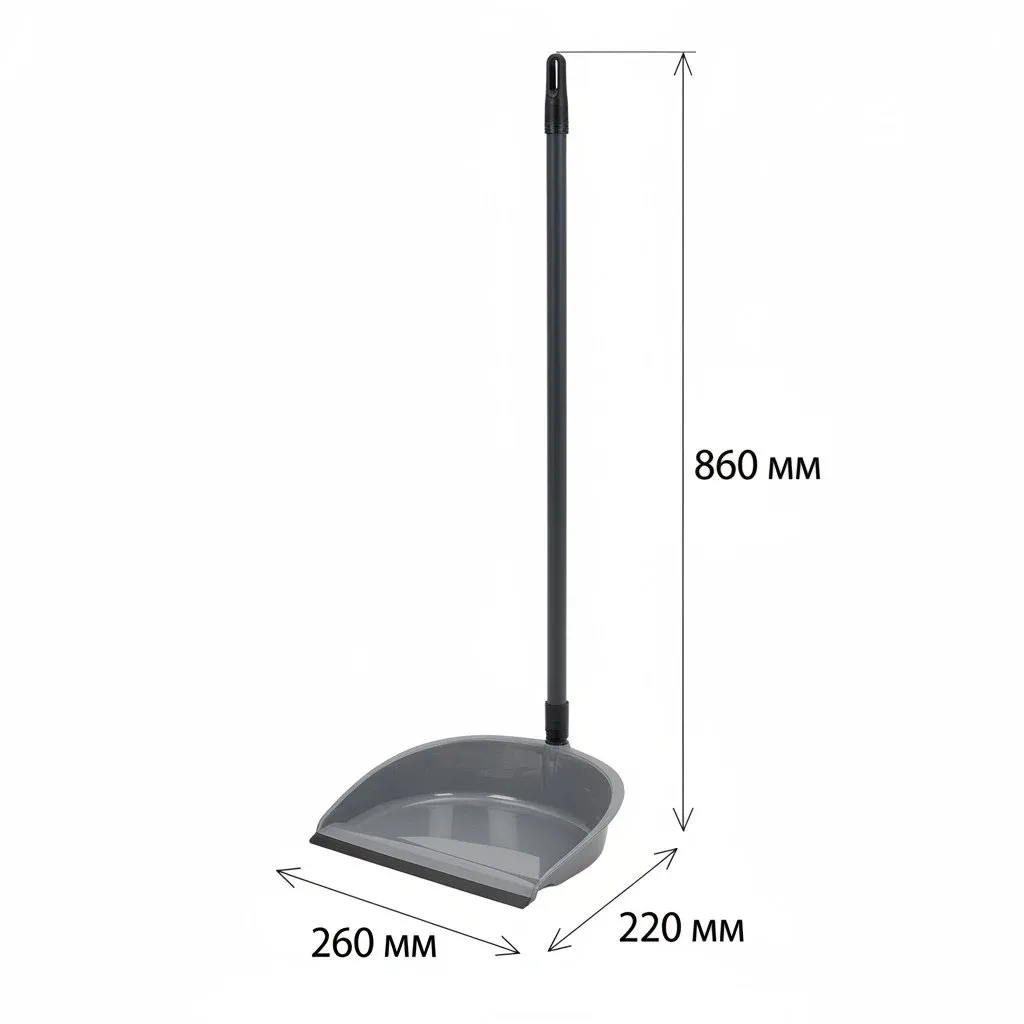 Совок для мусора с длинной ручкой "Фьюджи", пластиковый, с резиновой кромкой (15)